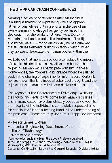 The Stapp Car Crash Conferences are a living memorial to Col. Stapp's life of research and service.